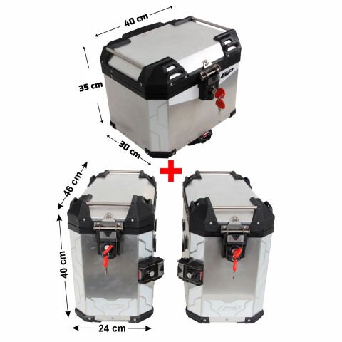 GP Kompozit Universal 37+40+40 lt Alüminyum Motosiklet Çanta Seti Gri