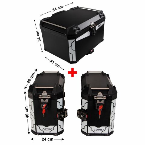 GP Kompozit Universal 37+40+40 lt Alüminyum Motosiklet Çanta Seti Siyah
